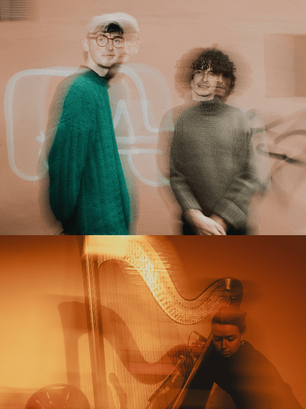 Also performing is Manon McCoy, a British-French experimental harpist and composer based in the north of the UK. Working across live performance, installation and sound art, her practice centres on improvisation and exploring the boundaries of both pedal and lever harp through preparations, live processing and extended techniques.