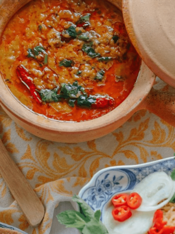 Sabzi vegetable curry, daal, naan bread, tomato chutney and coriander yoghurt chutney