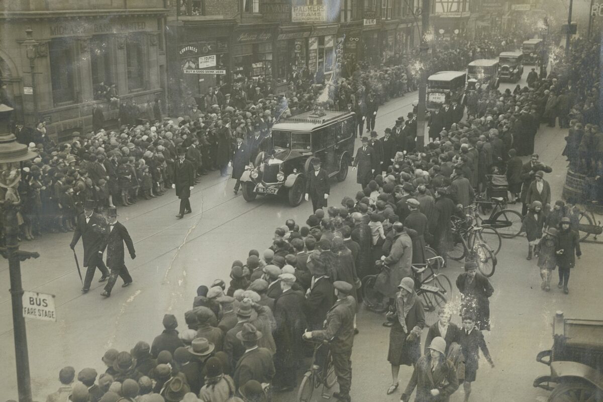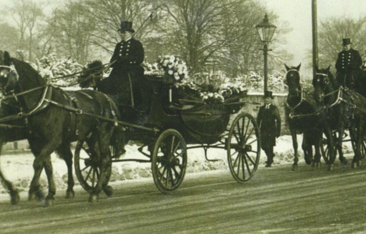 Later, in the twentieth century, a transition from horse-drawn carriages to motor vehicles gradually took place, but it was a slow and sometimes painful process. Jason Heath recounts how his family firm of funeral directors invested in motorised hearses in the 1920s but they were not always welcomed by mourning families. It is said that one woman in Sutherland Street opened her door and was horrified by the sight of the waiting motorcade; ‘I am not letting you rush my husband off in one of those things! Go and fetch the horses!’.