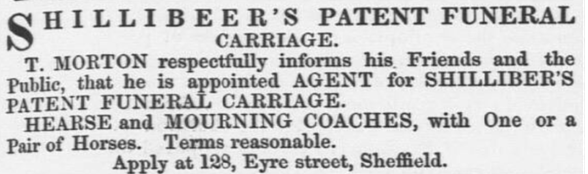 Advert for T Morton Shillibeers from Sheffield Independent, 3 February 1849. Source: Local Studies.